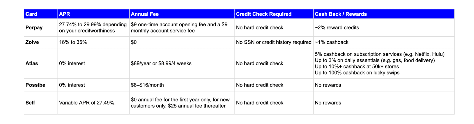 - Fees: Look for annual or monthly fees and compare them against expected rewards or credit-building benefits.