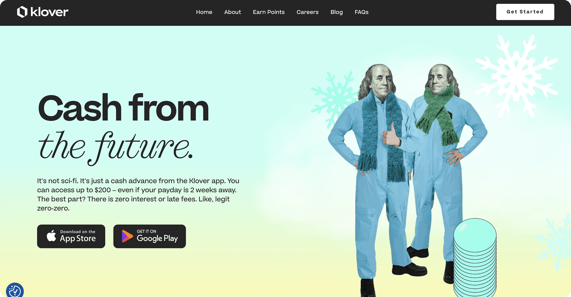 6. Klover - Klover supports users who need access to short-term funds, especially for unexpected college or living expenses. Users must have W-2 income and a linked checking account to earn points and receive no-interest advances. Points are earned by performing activities such as scanning receipts, taking surveys, watching ads, inviting friends, and tracking spending